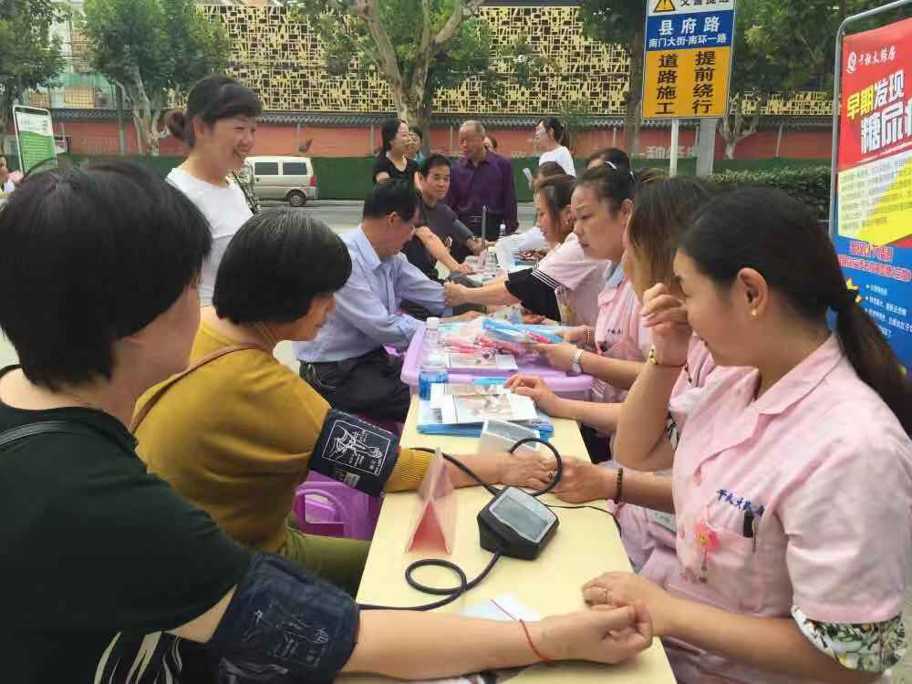 “,现场药师热情服务,义务测量血压,传授药品知识。